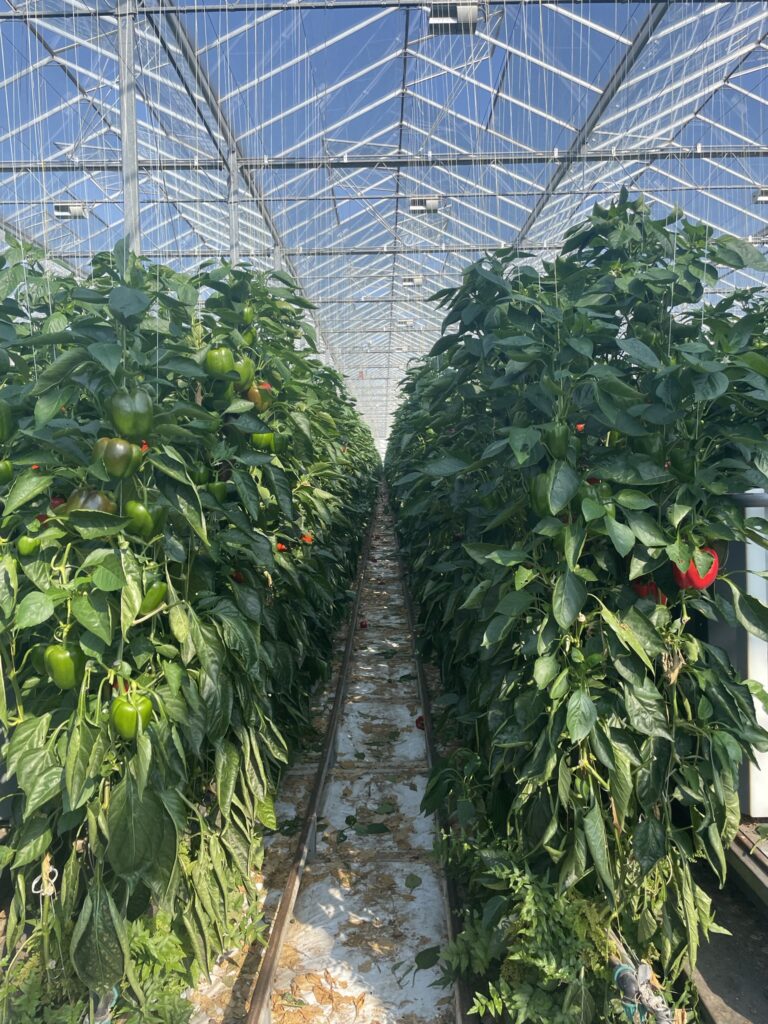 As part of our trip, we travelled through The Netherlands, where we had the opportunity to visit Van der Harg in Bemmel. They grow and pack capsicums/bell pepper in their 8.6 ha of glasshouses. They are also experimenting with growing eggplants. The design of the Dutch glasshouse originated in Den Hague, and there are 10,000 ha of glasshouses in The Netherlands today, which largely grow bell pepper, eggplant, tomato and cucumbers.
