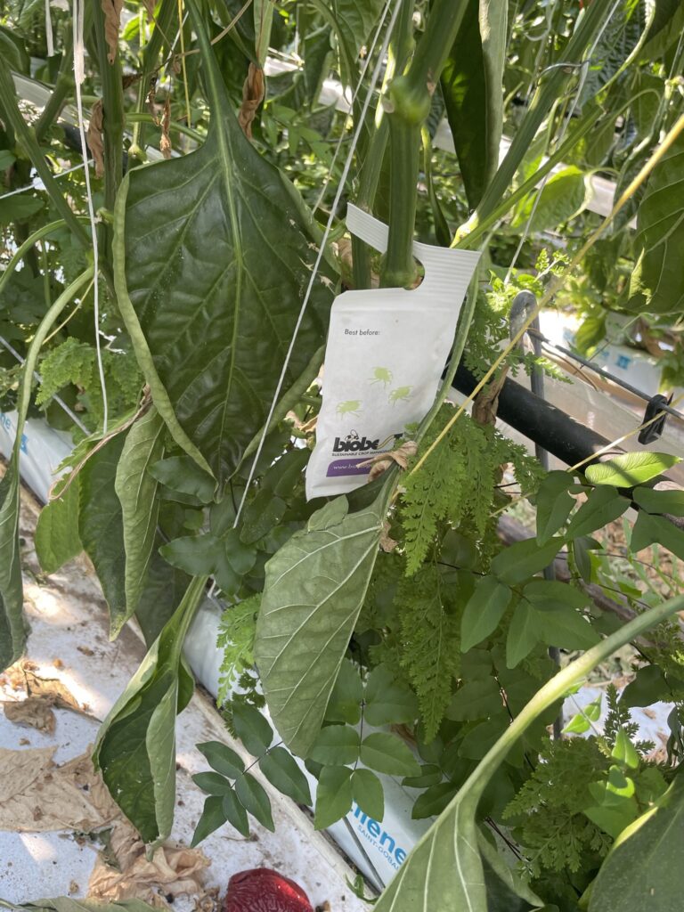 The seedlings are grown at an independent nursery and planted into the glasshouse in November. The first fruit is harvested in February. Production lasts until October when the plants are pulled out and the greenhouse is prepared for the next crop. Interestingly, the crop is grown with few to no sprays, however the crop cannot be classified as organic as it is not grown directly in the soil. The plants are grown in ‘cultivation gutters’, where there are understory plantings which are used for pest control, and climate control.