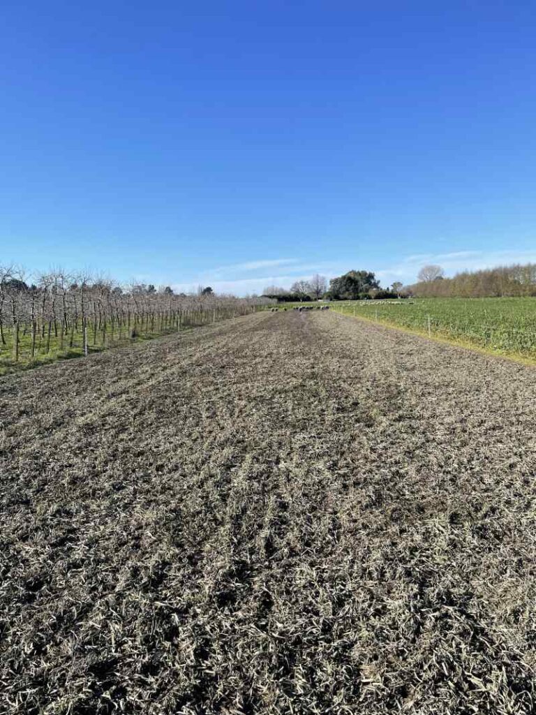 One of the five regenerative principles is to integrate livestock, which we have not yet done in our Regen treatment. However we have grazed our Conventional treatment, which might seem a bit backwards. It is common for Heretaunga Plains growers to plant an annual ryegrass over the winter and graze it with lambs, so we are including sheep in our Conventional treatment.