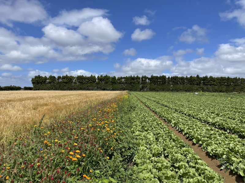 Being able to see the biodiversity strips, native plant pods (insectaries), and cover crops that are a part of “A Lighter Touch”, then hearing about the differences they are seeing with all three working together was a highlight for me. LandWISE also has native insectaries and has planted biodiversity strips alongside our annual cover crops. It was interesting to hear Howe (Balle Brothers’ crop manager) talk about how he expected they would have to spray an insecticide due to an increased number of aphids. However, they left it for two weeks, and the aphid numbers dropped as the beneficial insects controlled the aphid population without the need for insecticides.