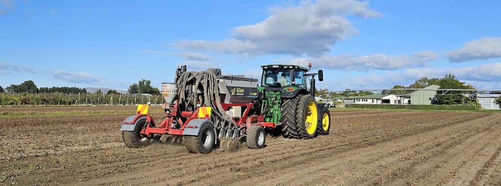 After planting, the plots were aerated and rolled by Patrick Nicolle, and we aim to stay off them until October, prior to planting butternuts for Heinz-Wattie’s.