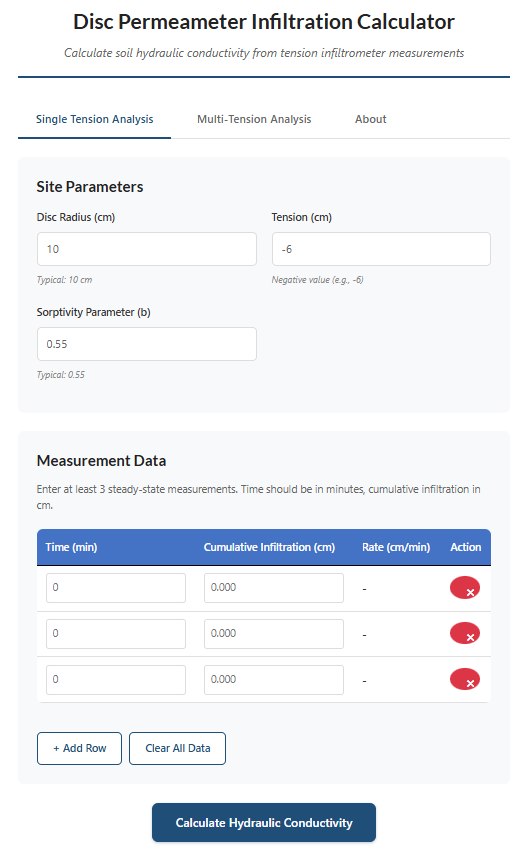 We have launched an online web calculator to process soil infiltration rate measurements collected using a Disc Permeameter. The calculator analyses measurements made at different tensions. It is a beta product, primarily made to assist us in assessing soil infiltration, porosity etc. We are keen for any feedback!