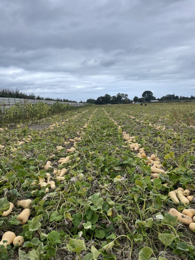 On the 10th of March, the butternuts were cut for fresh market and placed into windrows ready to be collected into bins.