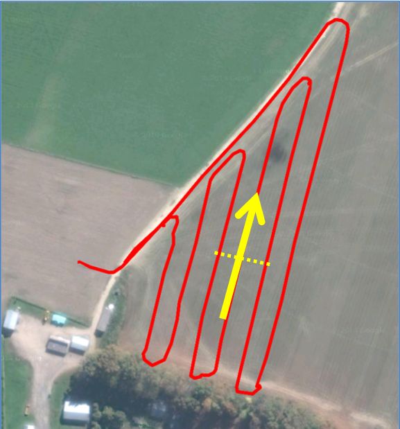 While applying fertiliser on adjacent passes physically overlaps the applications, is it useful to measure a single pass. The single pass data can be manipulated to assess both current practice and alternatives, such as different swath or bout widths, and the effect of running round-and-round or to-and-fro. Ensure the trays are placed out at least as far as the furthest fertiliser particles get spread. This may be further that adjacent passes. All fertiliser applied must be measured and data will be used by the overlap formulae.