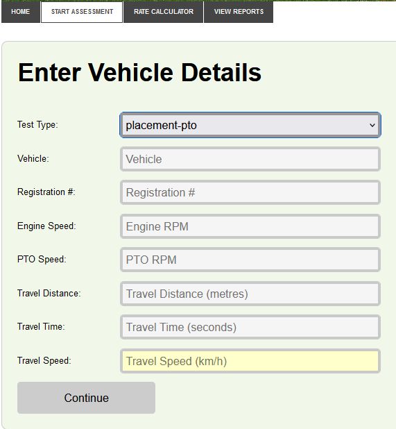 Enter the vehicle details so you can compare tests later. The travel speed is required – if you enter the travel Distance and Travel Time it will calculate the speed. Or you can enter the speed directly if you know it accurately. GPS speeds can be accurate, but speedometer readings are often incorrect, and a field check of time to cover distance is valuable.